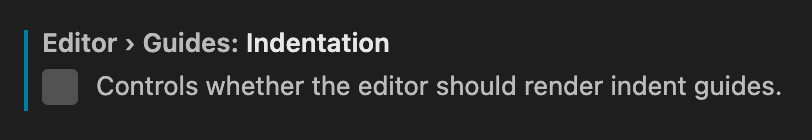 VS Code has gazillions of user interface settings. By default it shows vertical guides for tab indents in code which I found distracting so I turned those off.