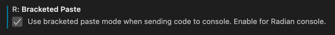 Many folks who use VS Code and R also recommend using radian which provides an R console that has a lot of improved features over the default console. This makes interacting with R more pleasant and similar to the experience in RStudio with features like code completion and syntax highlighting.